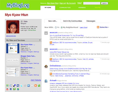 MyBlogLog adalah sebuah layanan dimana penulis dan pembaca bisa memberikan informasi profil pengguna MyBlogLog lainnya yang mengunjungi blog mereka.